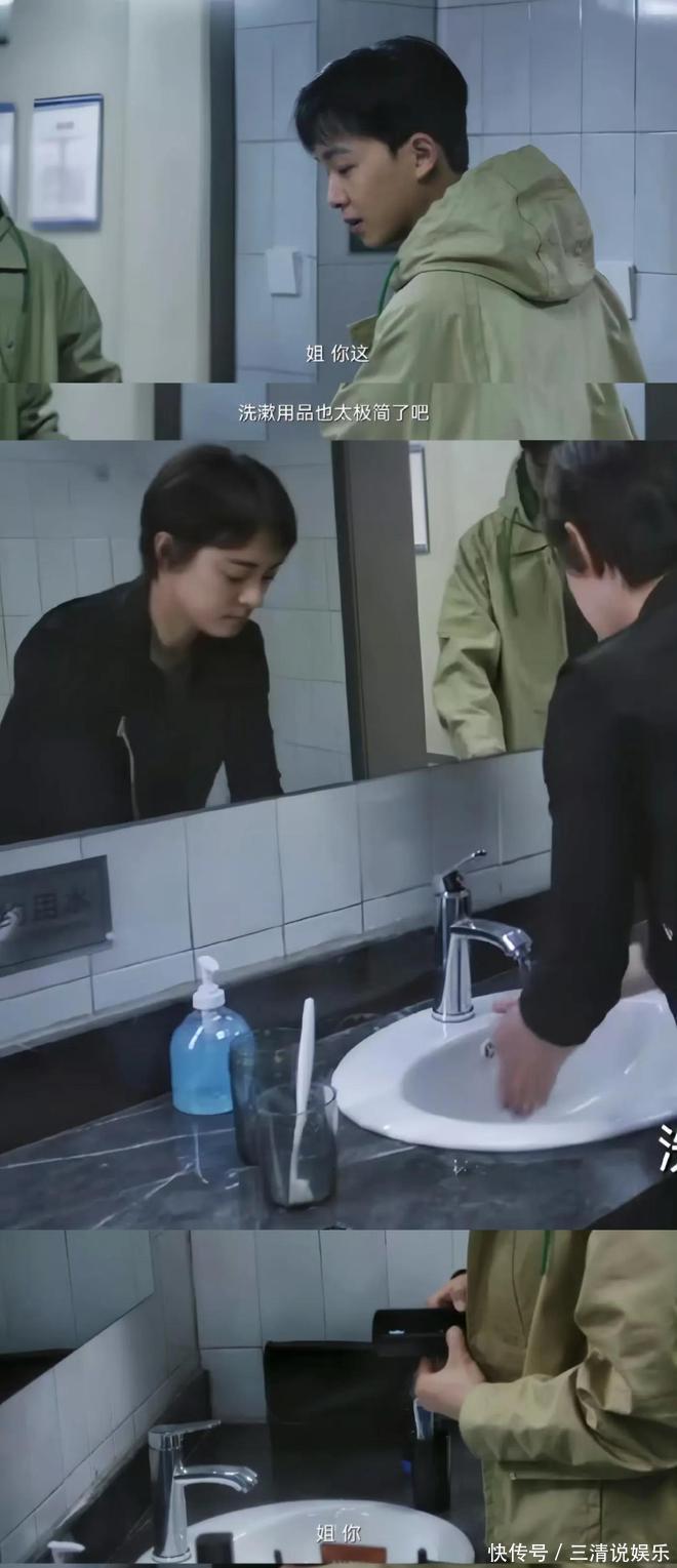 剧里有一幕是,不施脂泽的韩青,掬一捧清水拍把脸就成,心思都在案子上,略过那些繁琐的扮靓步骤,原生态出镜。